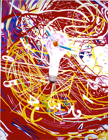 2001 Has solo exhibition including the 17' x 46' painting The Stowaway Peers Out at the Speed of Light (2000) and other Speed of Lightpaintings at the Gagosian Gallery, New York. Included in Les Années Pop: 1956-1968 at the Musée National d’Art Moderne, Centre Georges Pompidou, Paris.